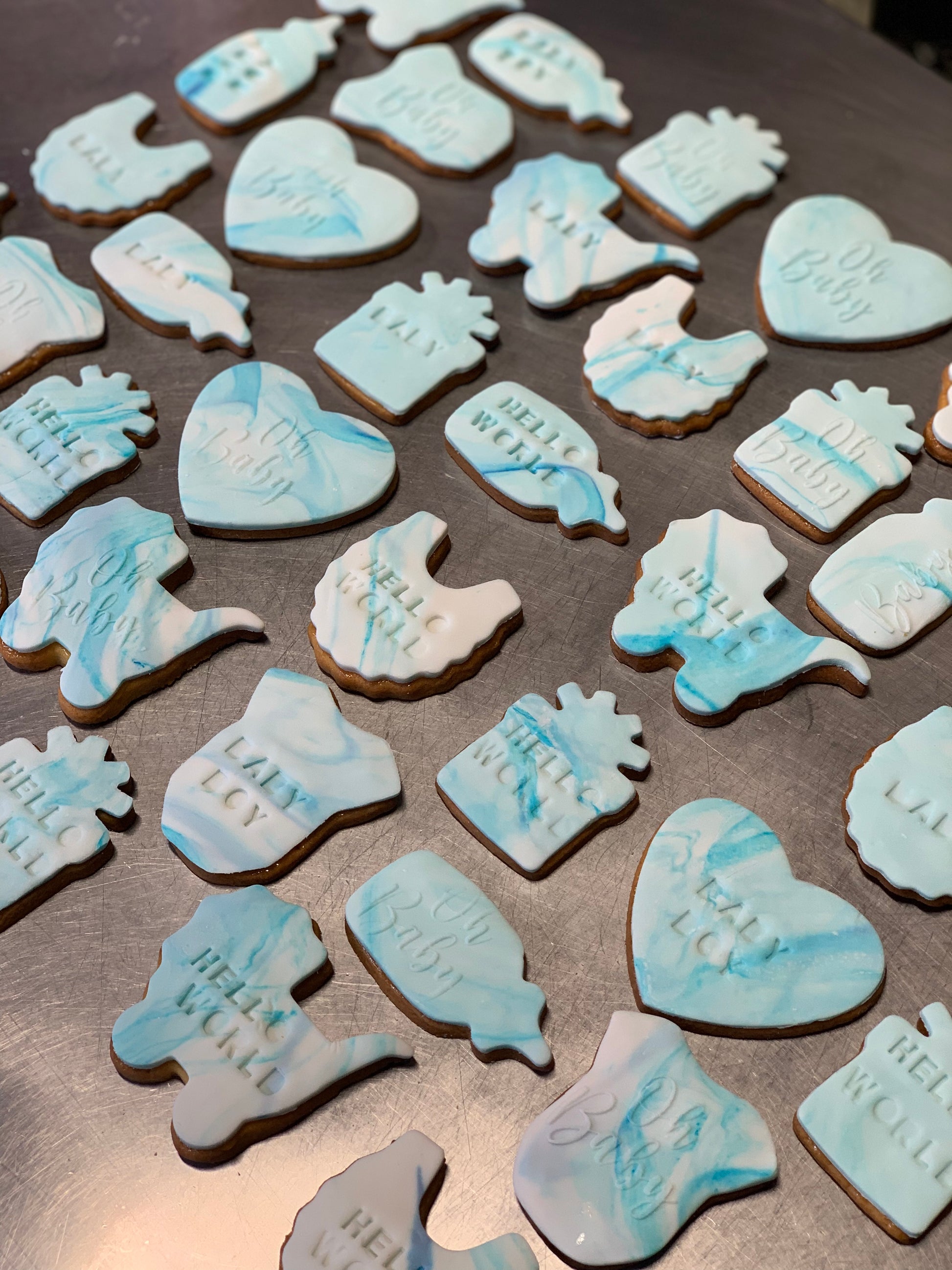 Our fondant cookies come individually bagged, which helps keep them fresh for up to 10days. They can also be frozen for up to 2month. Multiple shapes available, Cookies can fit 2-4 words.